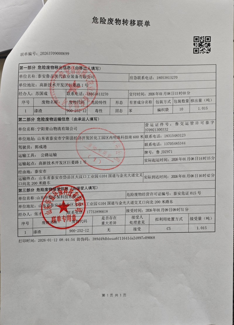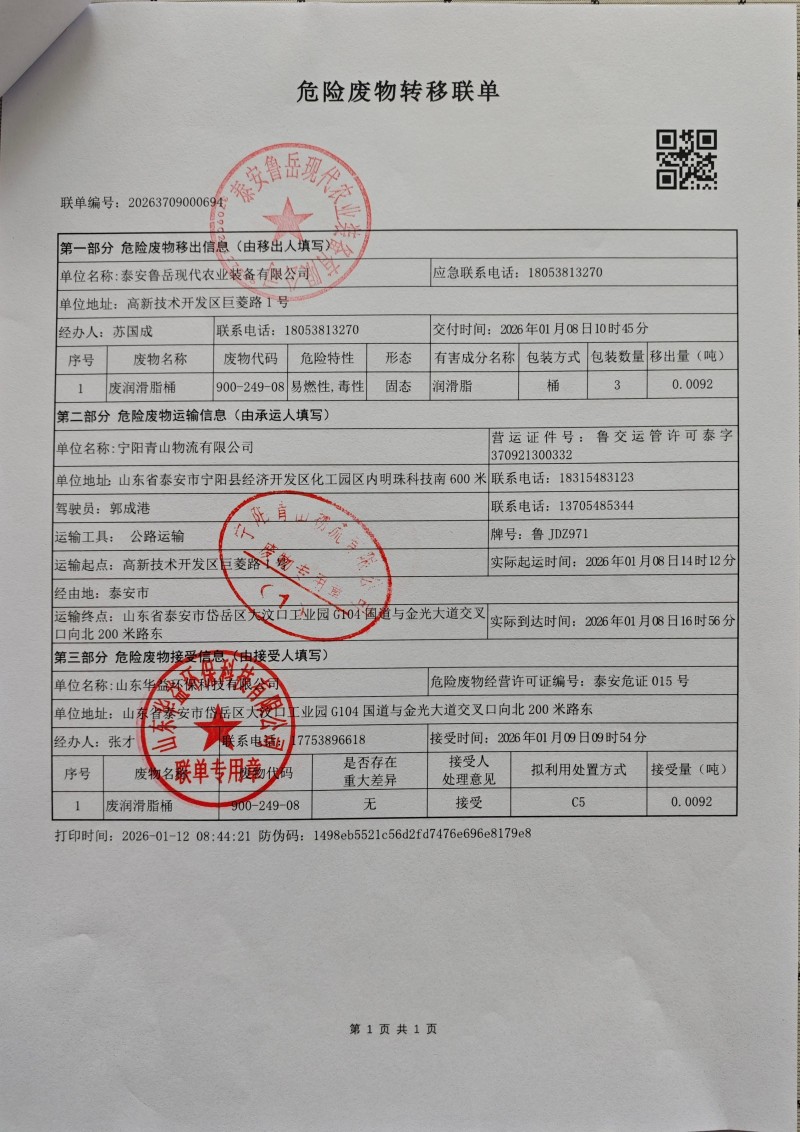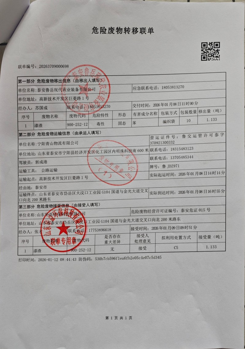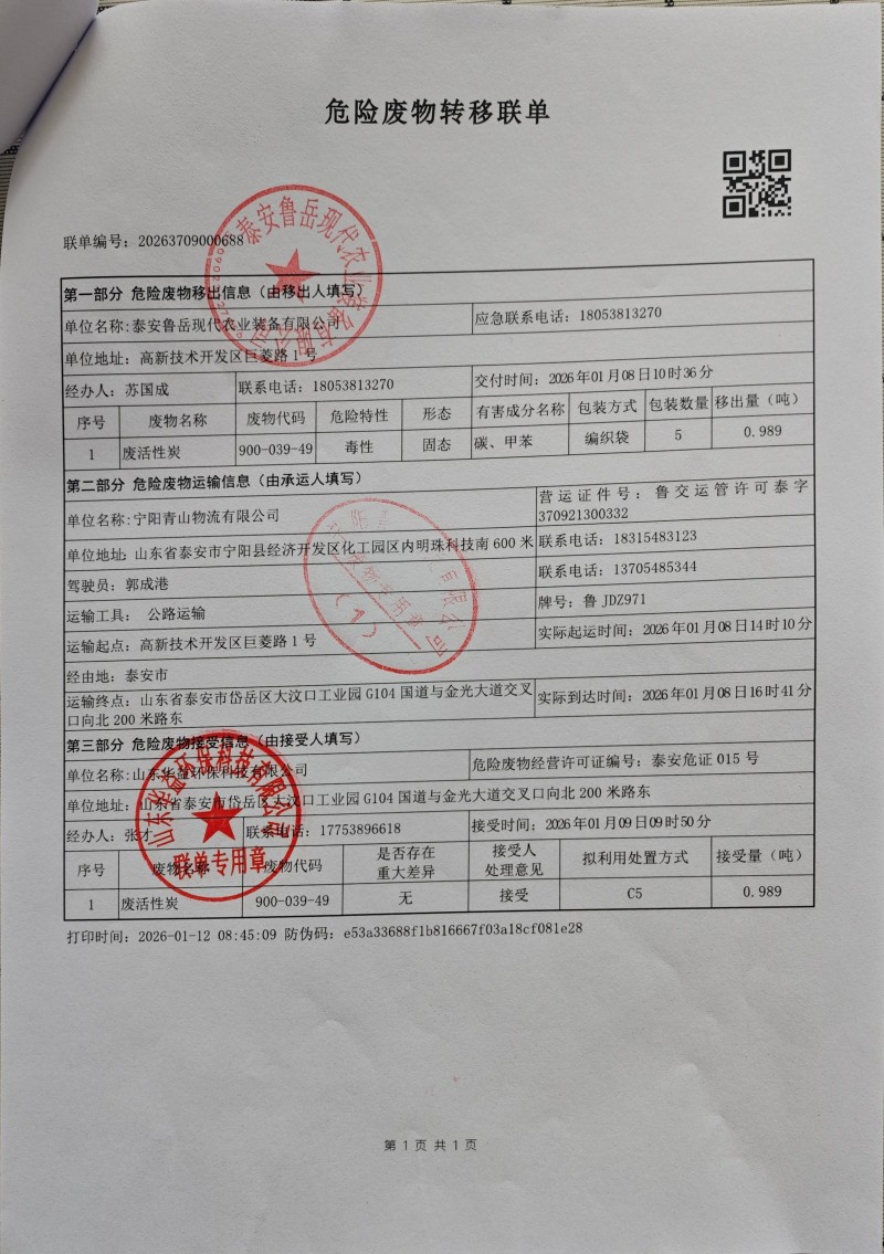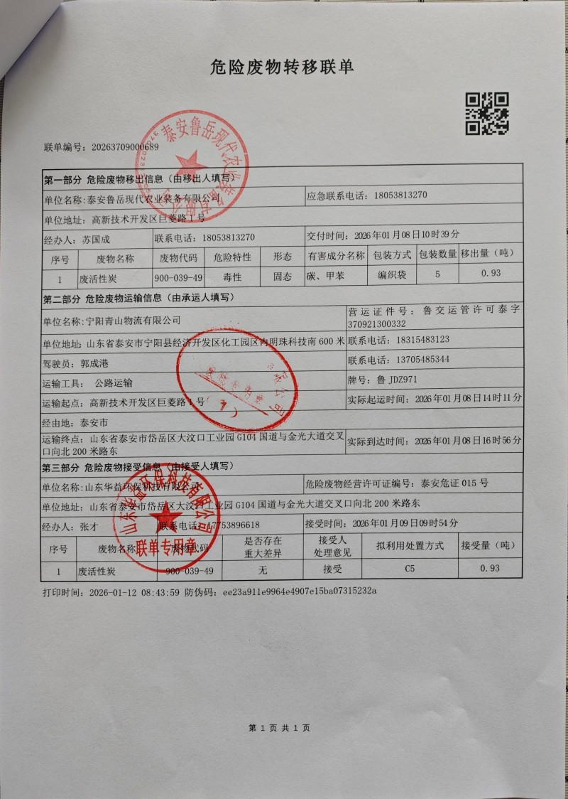 公司已與“寧陽青山物流有限公司”、“山東華益環(huán)??萍加邢薰尽甭?lián)合處理危廢共計7種,共4.5808噸。危廢轉移聯(lián)單參見附件。